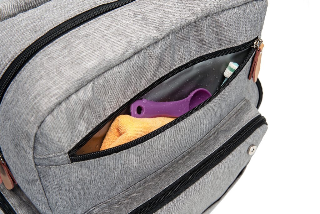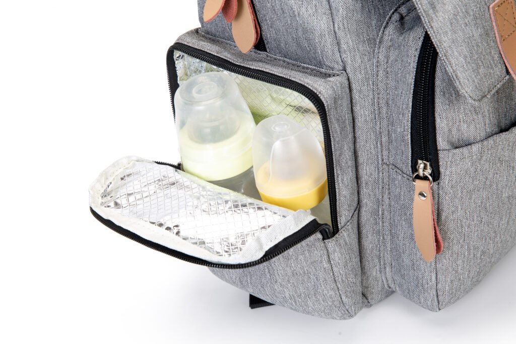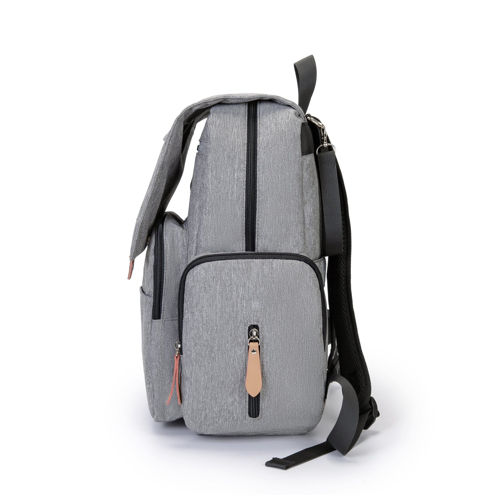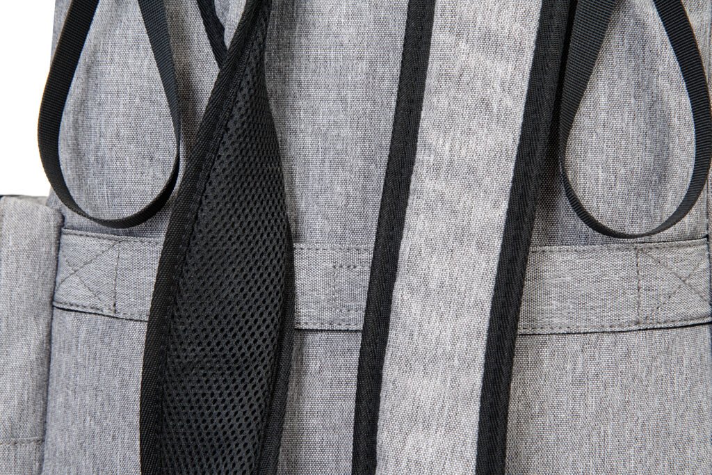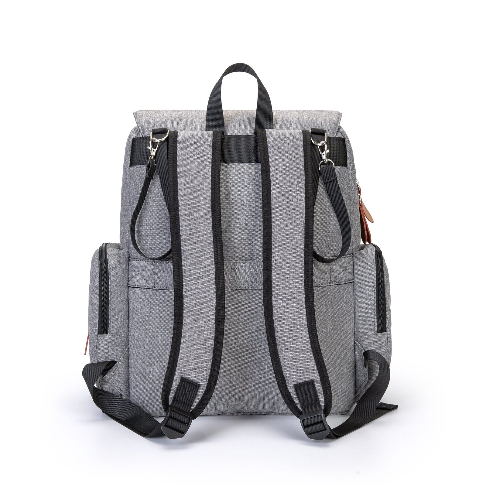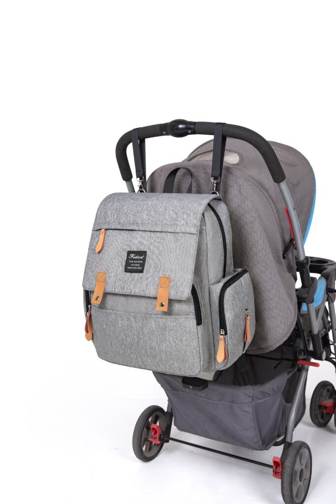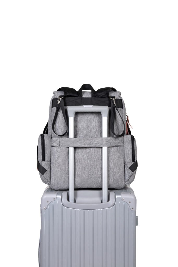 This heathered gray diaper backpack blends timeless vintage style with modern functionality, making it the perfect companion for busy parents. Crafted from durable, water-resistant fabric, it’s built to withstand daily spills and messy outings while keeping your baby’s essentials safe and organized. Designed for all-day comfort, it features padded, breathable shoulder straps and a sturdy top handle, allowing you to carry it as a backpack or by hand with ease. The stroller hooks on the back also let you attach it to a baby stroller, freeing your hands completely for errands or walks.