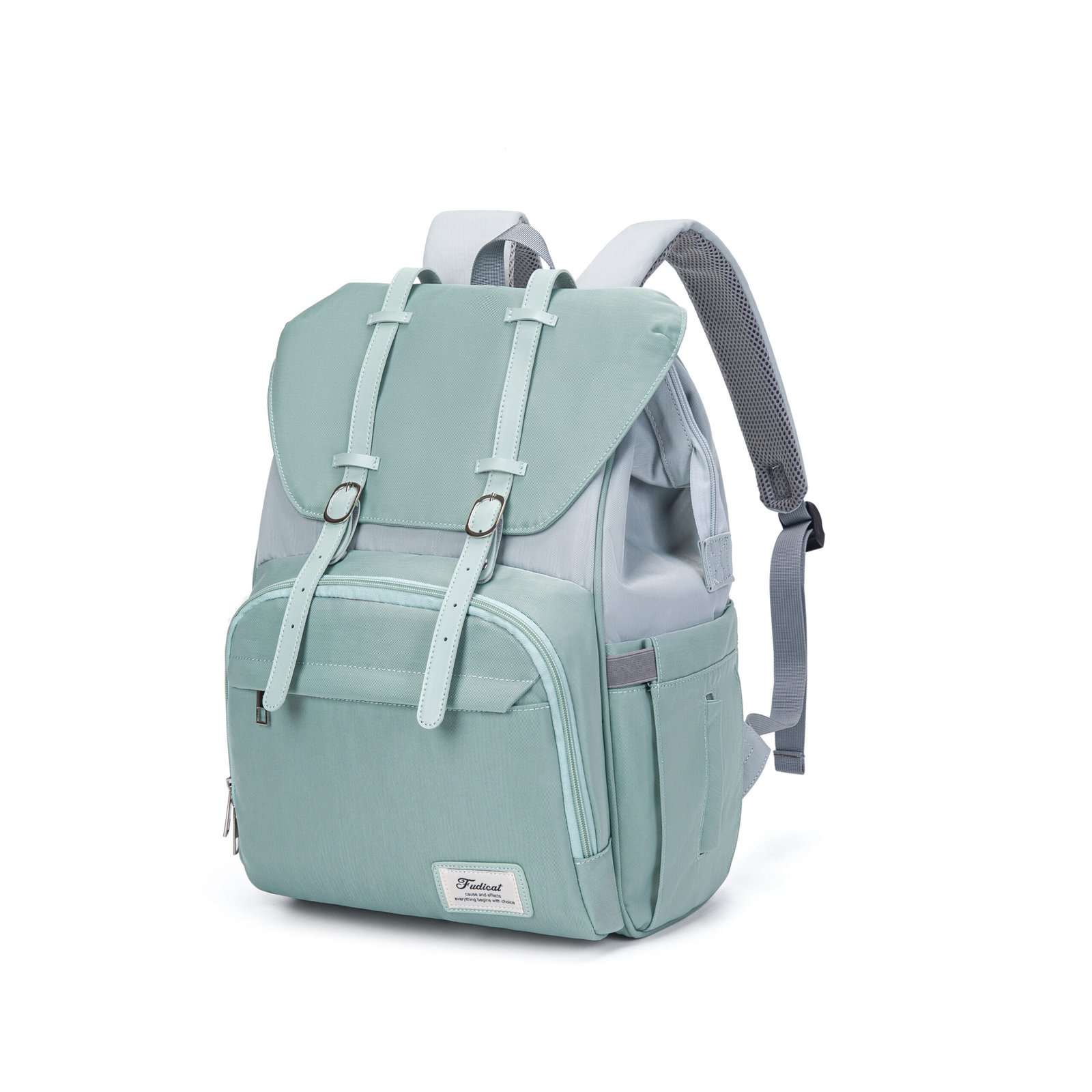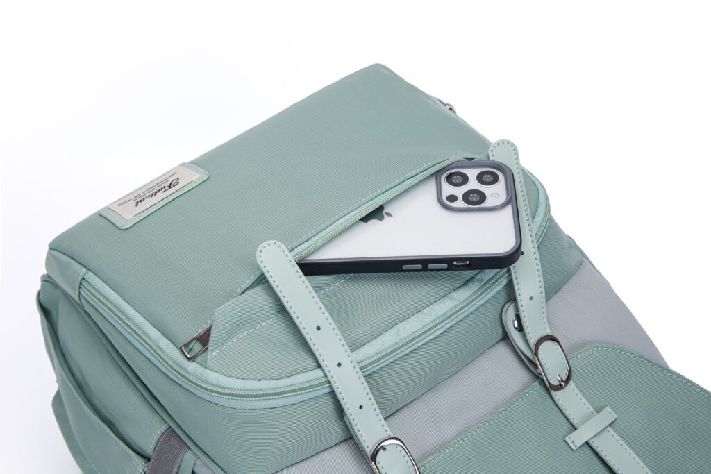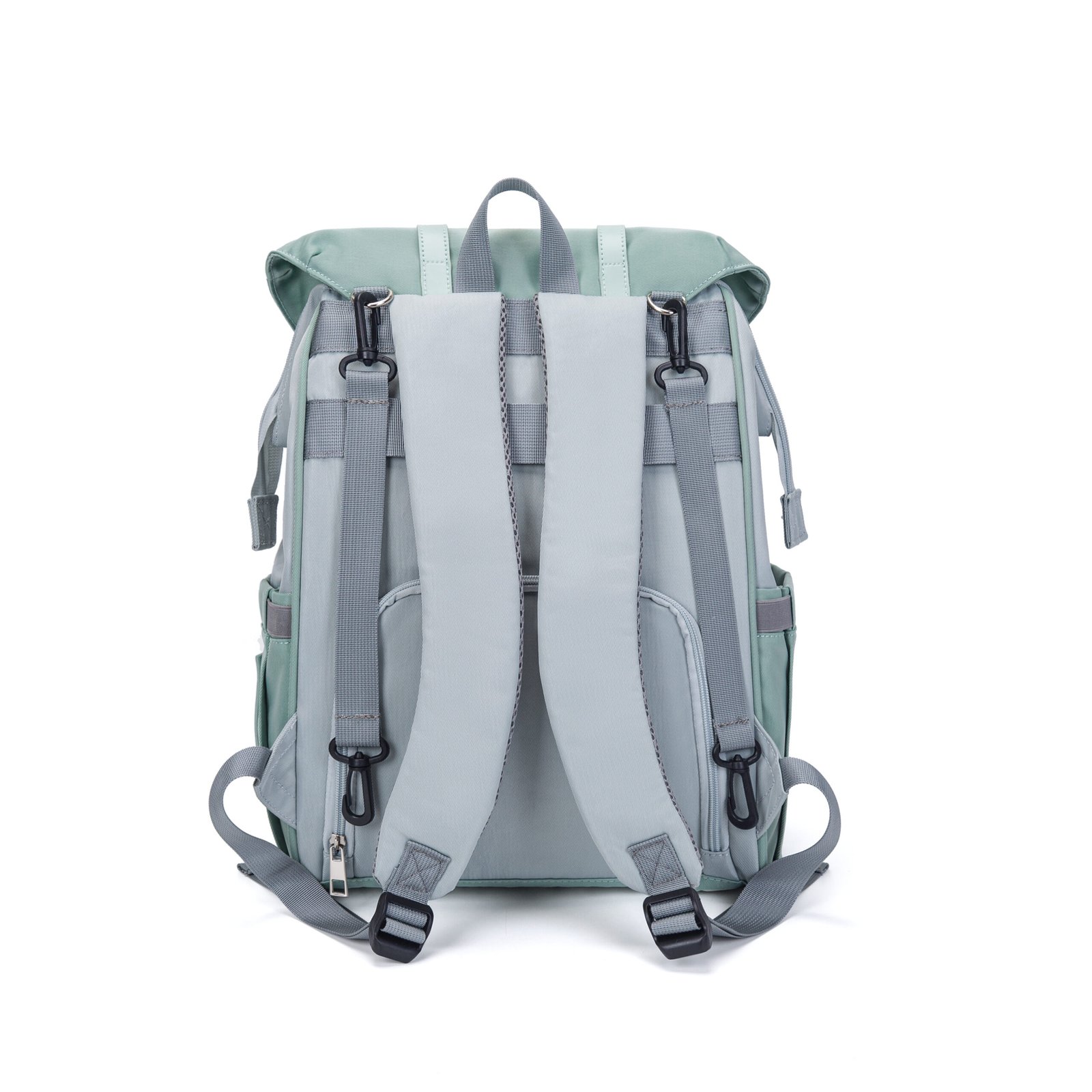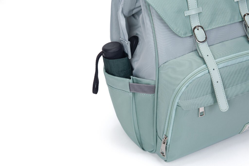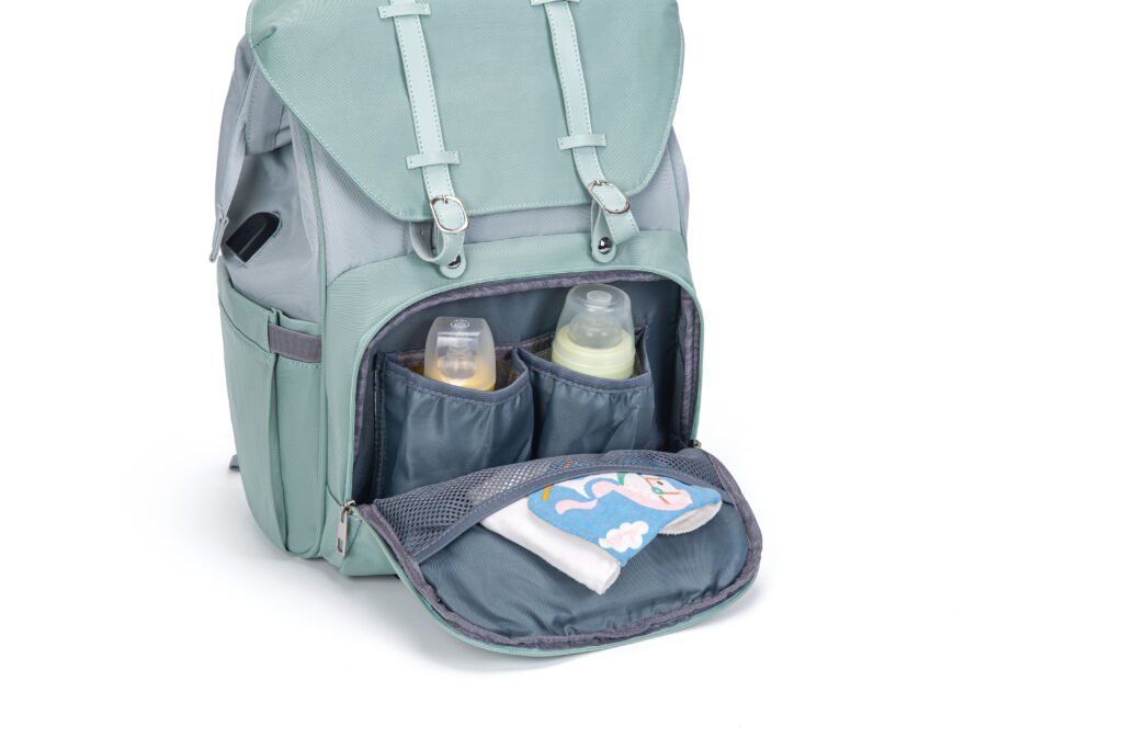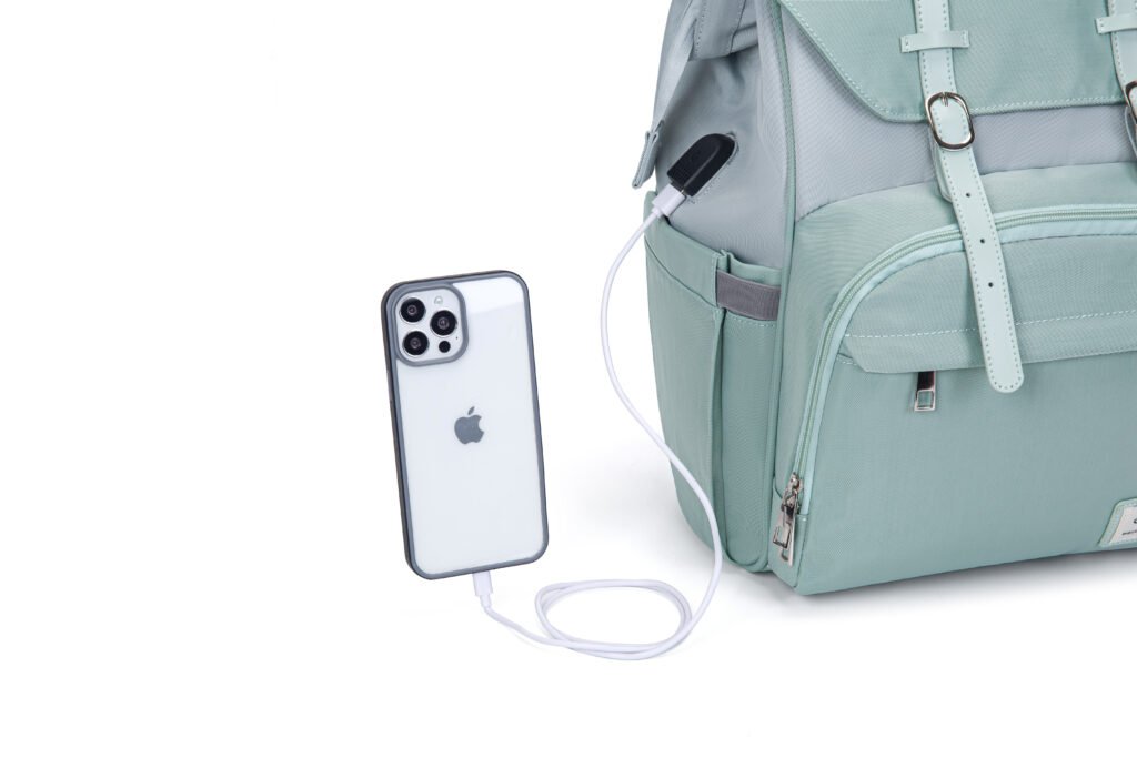 This elegant mint green diaper backpack combines vintage charm with modern practicality, making it the ideal companion for stylish parents on the go. Crafted from water-resistant, durable fabric, it repels light rain and spills, keeping your baby’s essentials safe and dry. Designed for all-day comfort, it features breathable, padded mesh shoulder straps that reduce pressure on your shoulders, while adjustable leather-like buckle straps secure the flap closure, adding a classic touch and keeping belongings secure. The built-in USB charging port lets you charge devices on the move, perfect for busy outings.